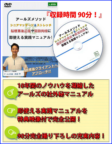 アールズメソッド シニアマッサージ&ストレッチ 脳梗塞後遺症や関節拘縮に即使える実践マニュアル! 家族でのリハビリやトレーニングを行う際のマニュアル